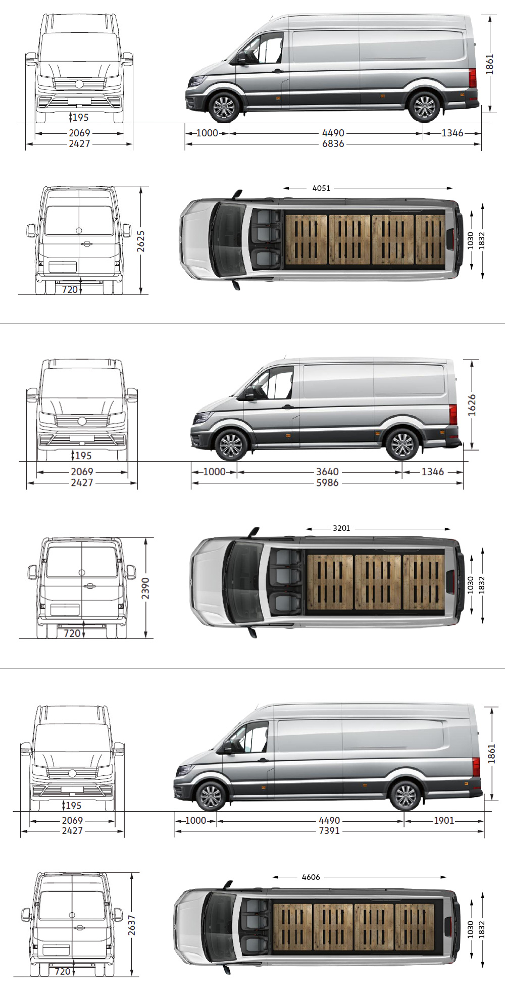 כל יישום בתחום ההיסעים דורש את הקרפאטר המיוחד שלו, ועל מנת להתאים את הקראפטר בדיוק למשימה לה הוא נועד, תוכלו לבחור באחד מבין שני מרחקי סרנים (3.640 מטרים או 4.490 מטרים), באורך מרכב בינוני (5.986 מטרים) או ארוך מאוד (7.391 מטרים), ובאחד מבין שני גבהי גג בין 2.637-2.390 מטרים. את הקראפטר ניתן לרכוש עם 13, 16 או 19 מושבים לנוסעים, בנוסף למושבי נהג ומדריך.