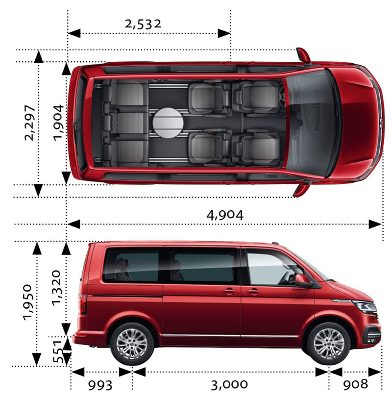 פולקסווגן מולטיוואן הוא כרטיס הביקור שתמיד רציתם עבור העסק שלכם – העיצוב האיקוני עם נגיעות של יוקרה משדרים את האיכות ואת המקצוענות שאתם שואפים אליה. חישוקי סגסוגת "17, שתי דלתות צד רחבות בעלות נעילה חשמלית, חלונות כהים ומבודדי חום מאחור, פגושים, בתי מראות וידיות בצבע המרכב, פנסי LED מתקדמים וגריל קדמי עם 5 פסי כרום – כל אלו יוצרים אפקט הגעה מרשים, בכל מקום שתגיעו אליו.